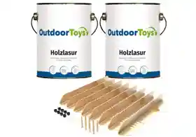 Mit der Holzlasur in der Farbe Pinie können kannst du zudem den Kinderspielturm vor sämtlichen Wettereinflüssen schützen und so dafür sorgen, dass dein Spielturm noch lange und in guter Qualität bestehen bleibt. Die Farbe ist hierbei nach der DIN EN 71-3 Norm getestet und somit speichel- und schweißecht. Dem Spielespaß steht somit nichts mehr entgegen!